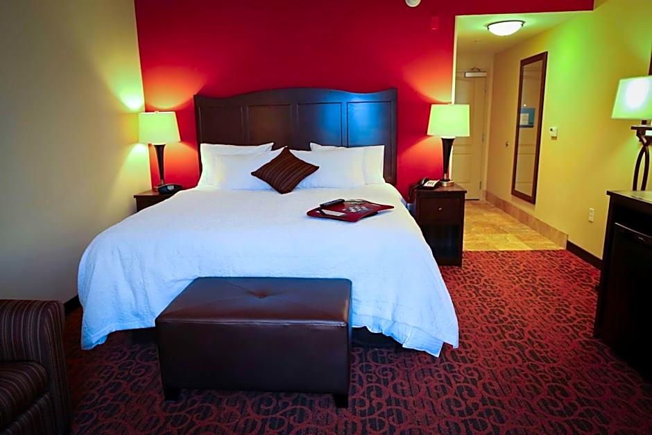 This mobility and hearing accessible room features 1 king Clean and fresh Hampton Bed. The bathroom is equipped with an accessible bath tub. The room includes a visual alarm and notification devices for the doorbell, or door knock and incoming phone calls.